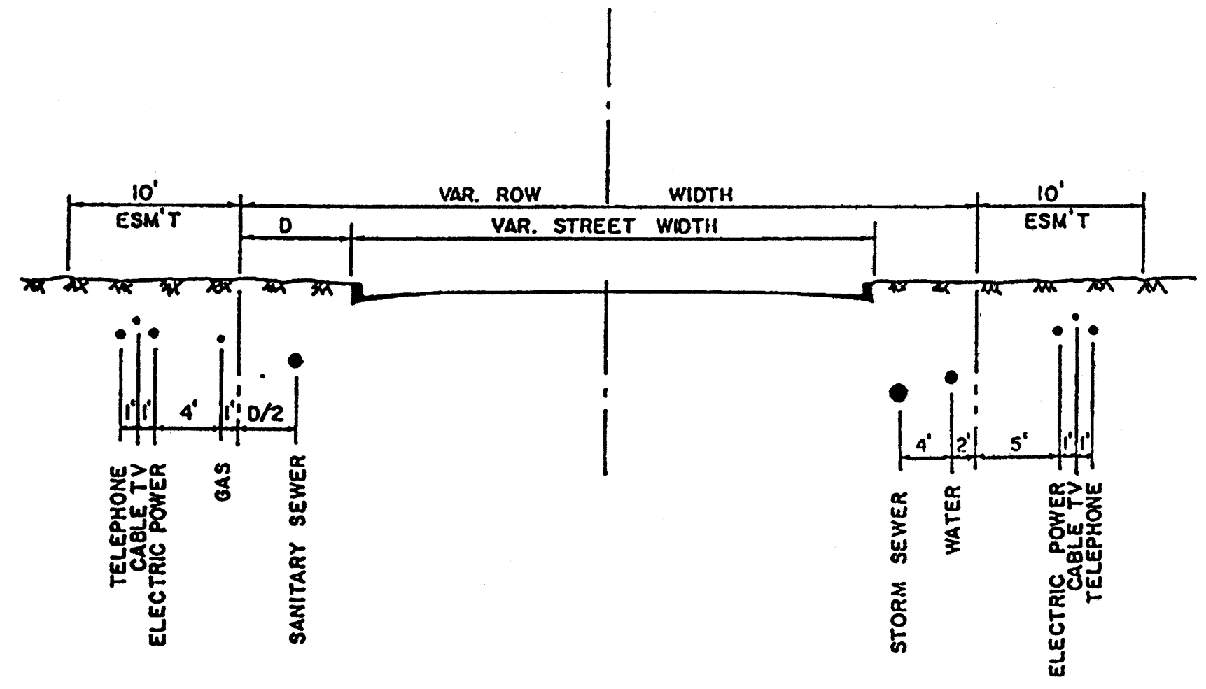 Figure 14-1; utility placement in right-of-way with adjacent easements.