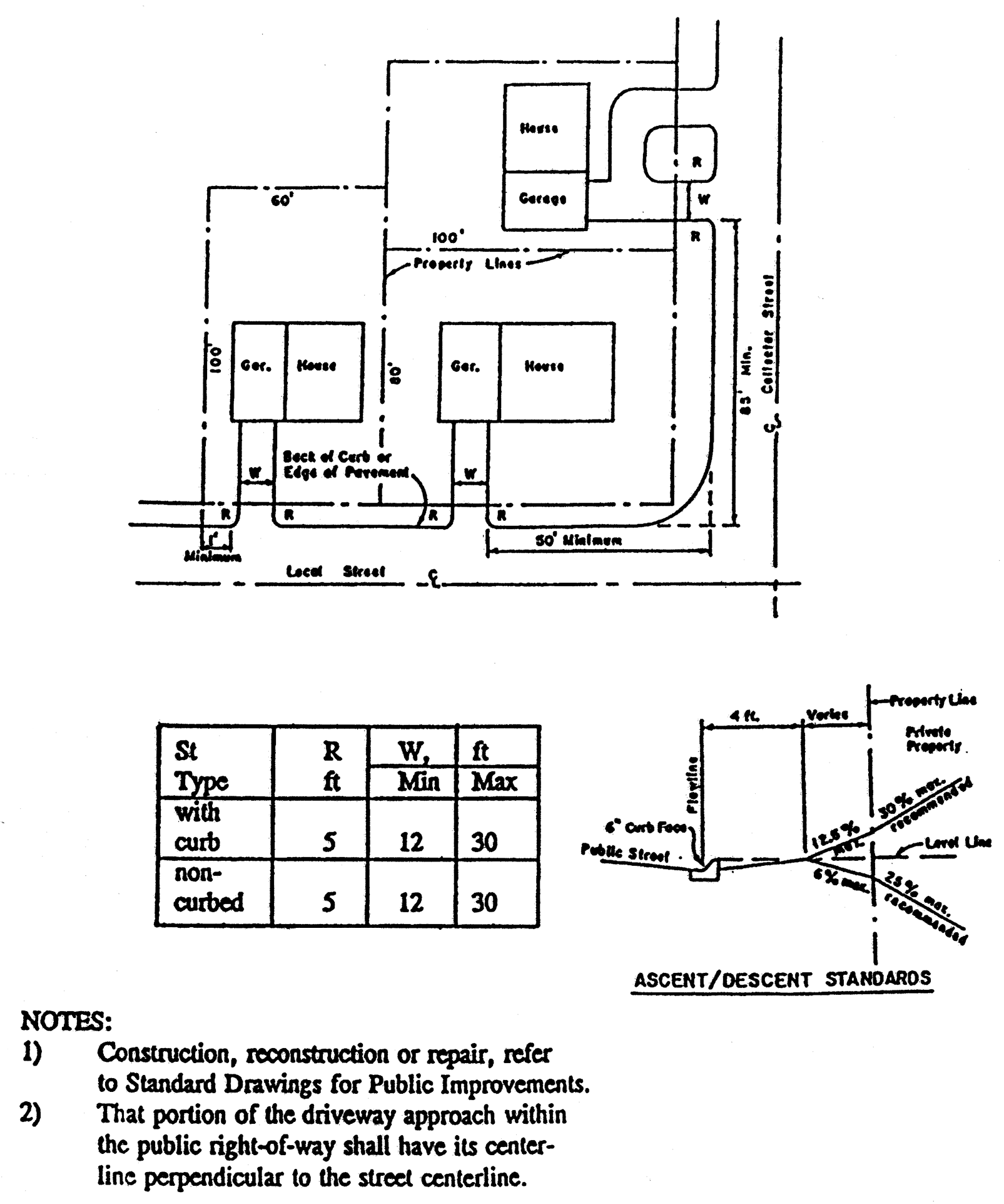 The developer shall construct driveways to conform to the criteria shown in figure 14-14.