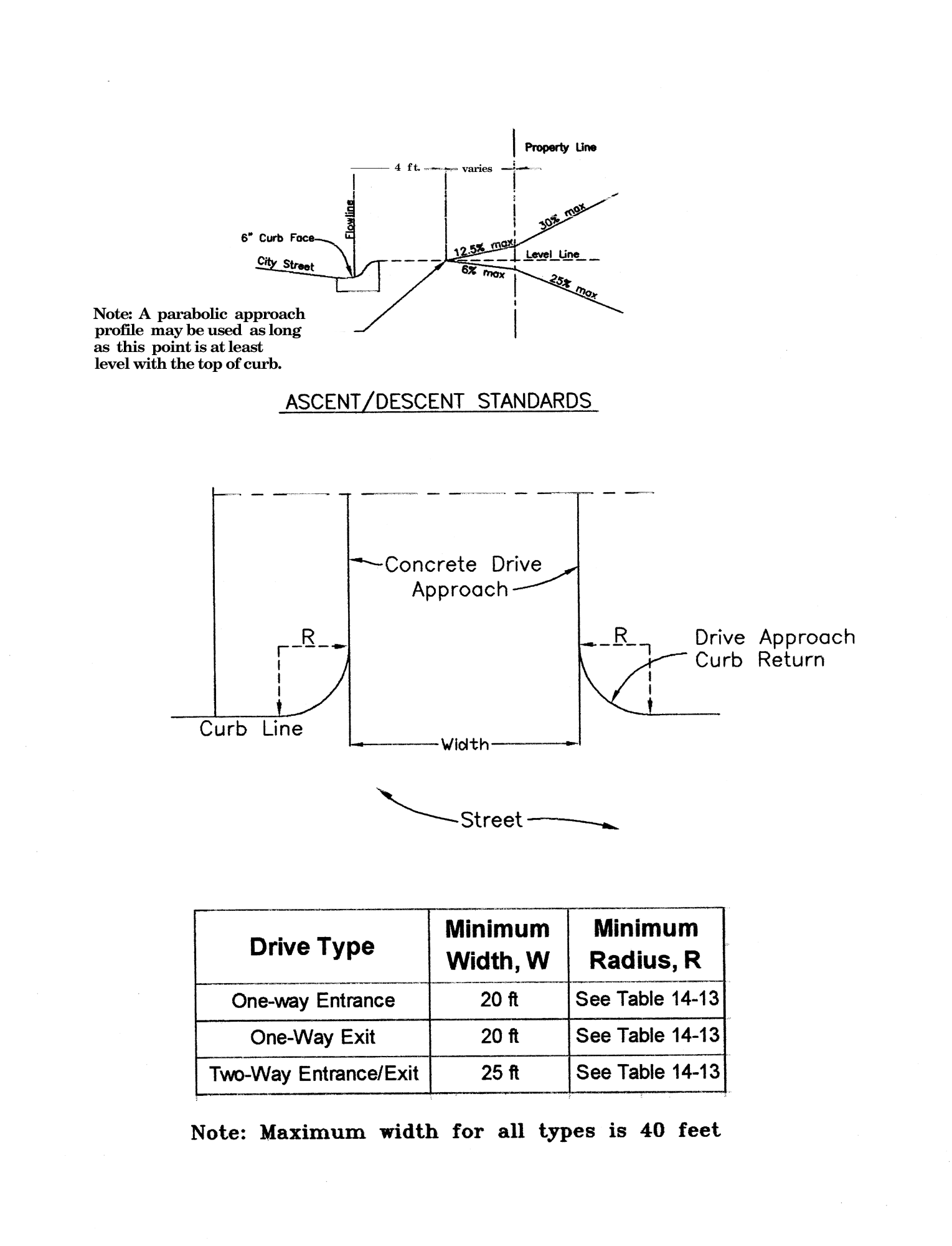 The developer shall design driveways with curb return radii according to the classification of the street as provided in table 14-13.