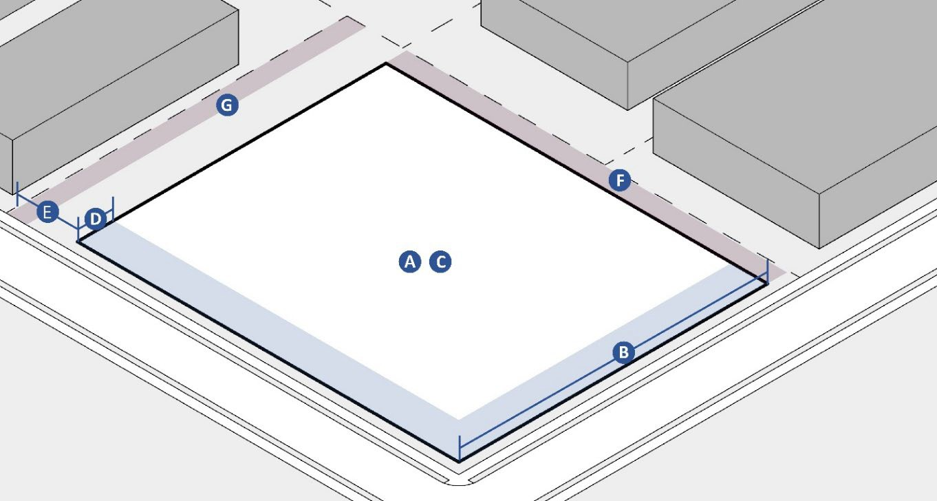 Where a building has frontage on Creekside Pond, the linear park, or a civic space instead of a street, these requirements apply to and from the Creekside Pond, linear park or a civic space as well.