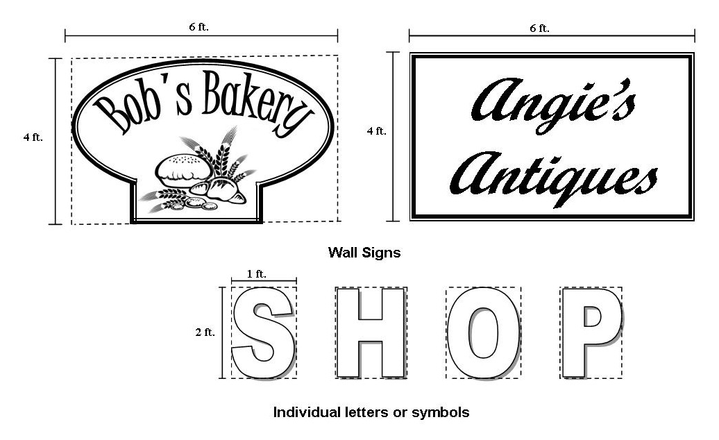 Wall sign: Each nonresidential building shall be permitted one or more wall signs. Two square feet of wall sign area shall be allowed for each horizontal linear foot of exterior wall length. If an exterior wall length is less than 16 feet, the maximum allowable sign area on that wall shall be 32 square feet. An allowable wall sign may be placed either on the building or upon a freestanding canopy, if such exists. A permitted wall sign must be placed on the wall for which it is authorized; sign areas for two or more walls cannot be combined and placed on a single wall. In multiple-occupant buildings, the owner shall determine how the authorized sign area is allocated among the occupants.