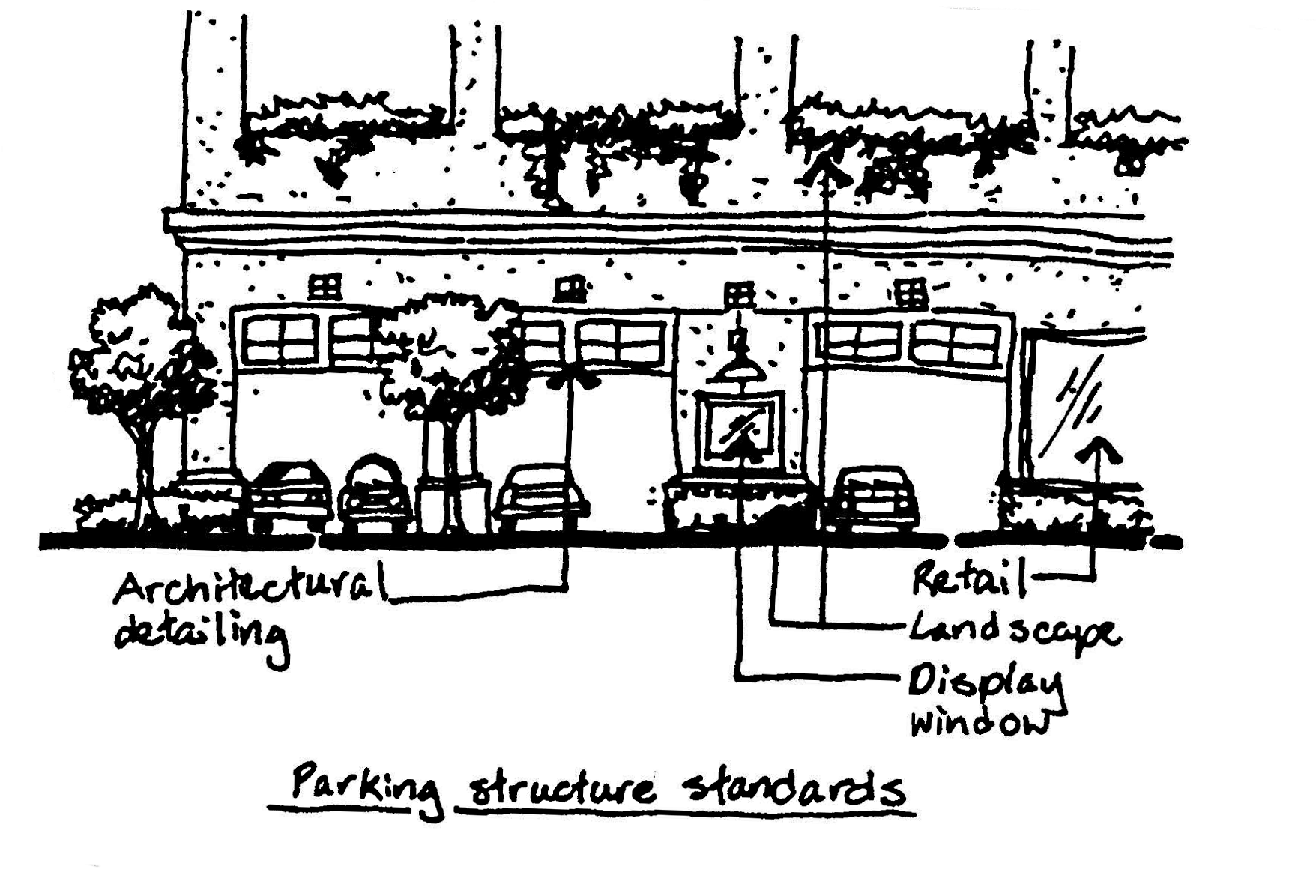Parking garages shall be subject to the landscaping regulations for a vehicular use area as outlined in the landscape code.