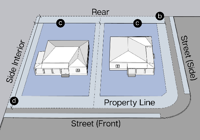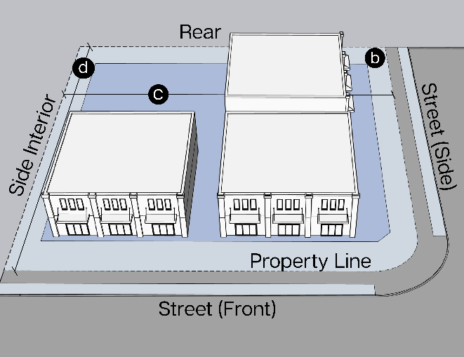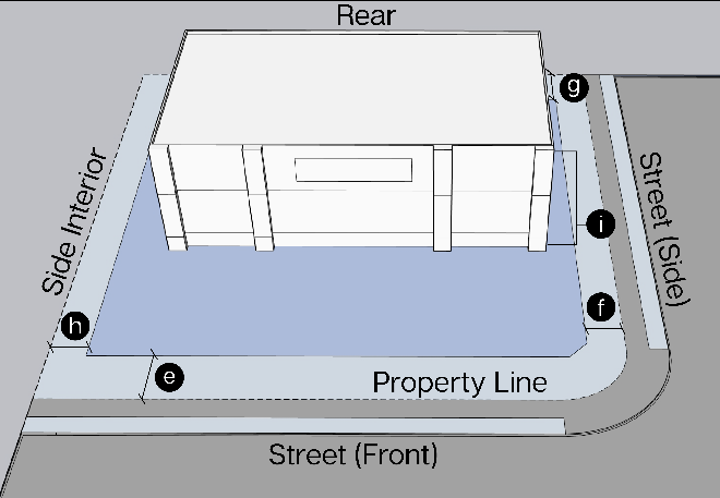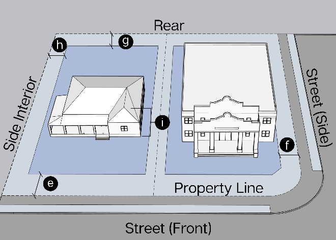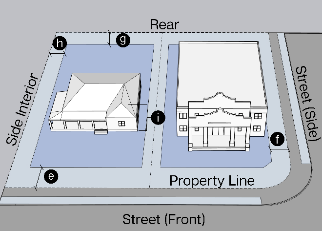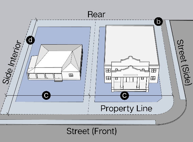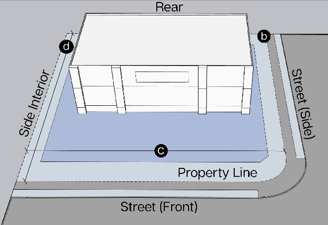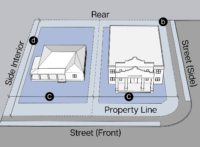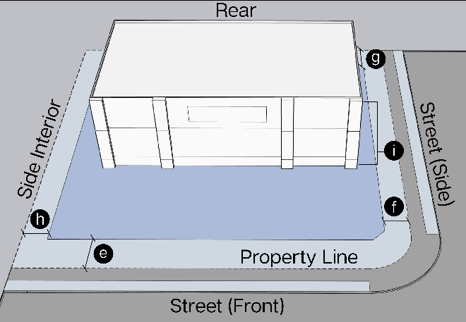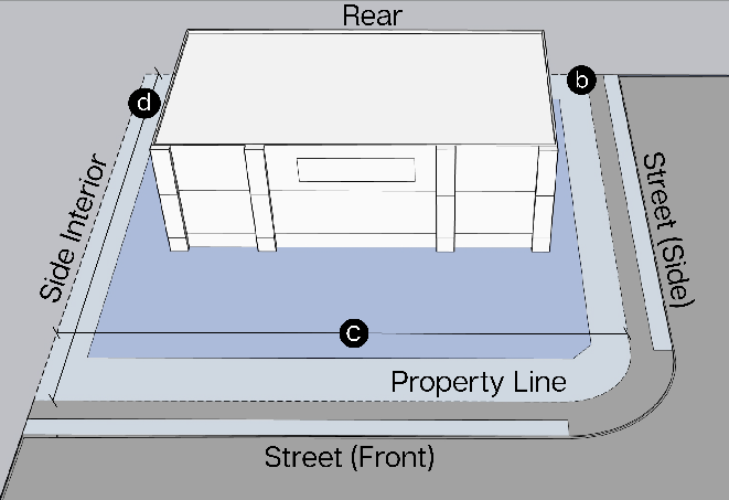 1 Front setback as listed or within four feet of the average setback on the same block face.