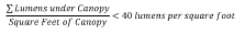 Total under-canopy output. The total light output used under service station canopies, defined as the sum of all undercanopy initial lamp outputs in lumens, shall not exceed 40 lumens per square foot of canopy and comply with the average lighting levels of Table 52-403Q.