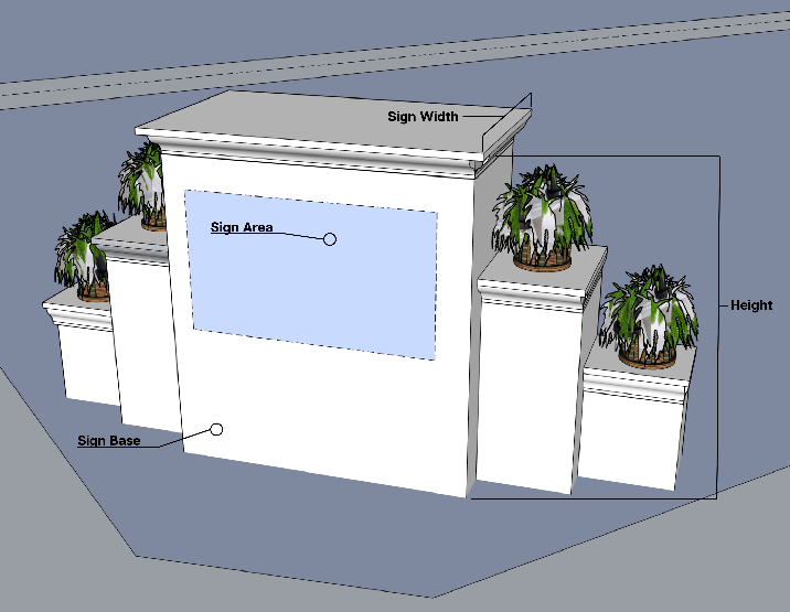 Such sign shall be located behind a 25-foot visibility triangle only after a final plat of the development shall have been filed and recorded with the county;