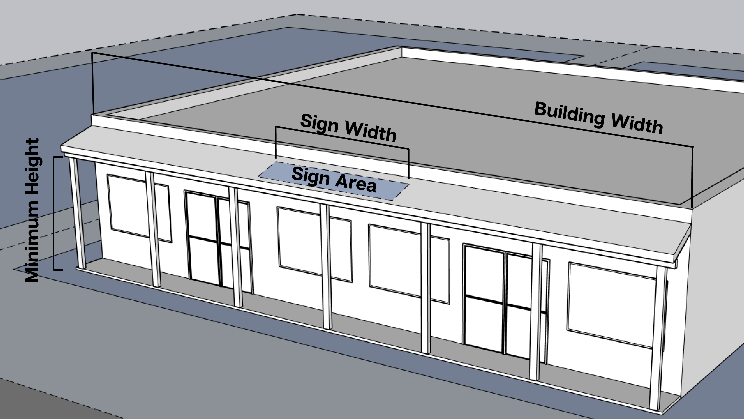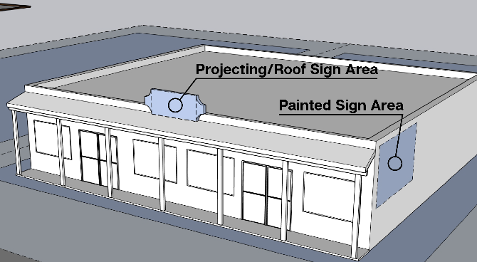 Awning: Awning signs may project from the wall of the building to protect the main entrance.