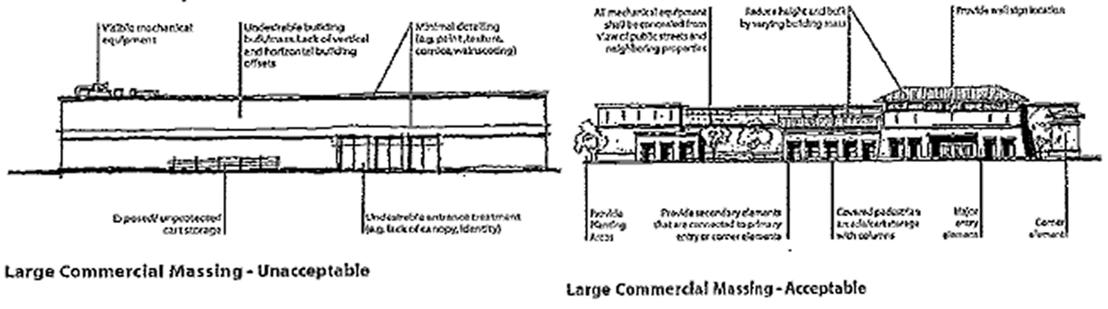 Ensure that building massing, height, and scale provide sensitive transition when adjoining residential zoning districts.