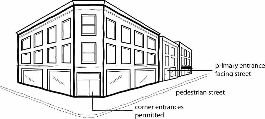 On corner lots, corner entrances are encouraged.