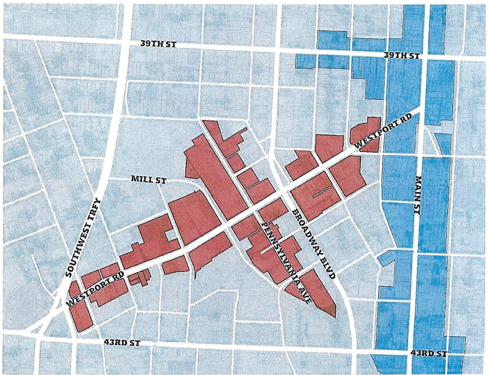 88-215-02-E. The PBO, Plaza Bowl Overlay, ensures that future expansion with the area generally located on the south and north sides of 47th Street (extending northerly to the north side of 46th Terrace), between Madison Avenue on the west and J.C. Nichols Parkway on the east will continue in a quality manner, respectful of the current design of the Plaza. The overlay codifies height and use recommendations of the Midtown Plaza Area Plan.
