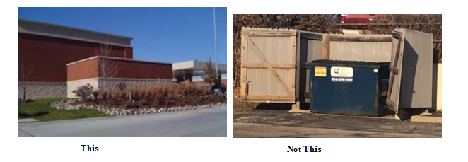 Buildings or cabinets shall be properly maintained, and provide the appearance of a permanent structure. Buildings or cabinets shall be consistent with the built environment around the facility to maximize the blending of the facility into the environment.