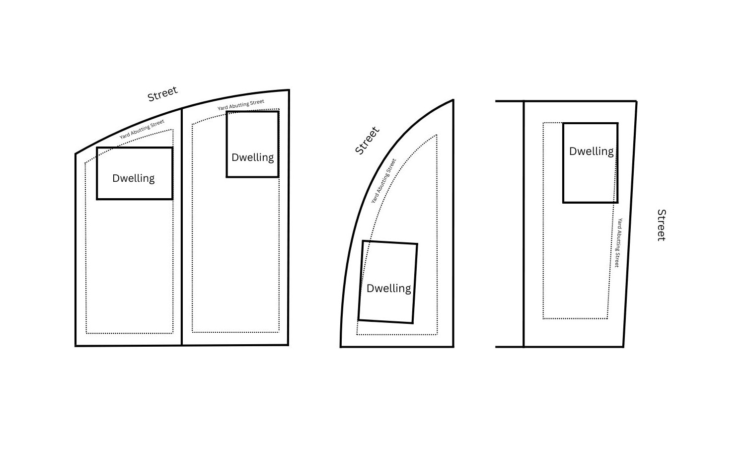 The property must be a lot with property lines which include an acute angle or curve which interferes with the continuation of a facade which is otherwise compliant,
