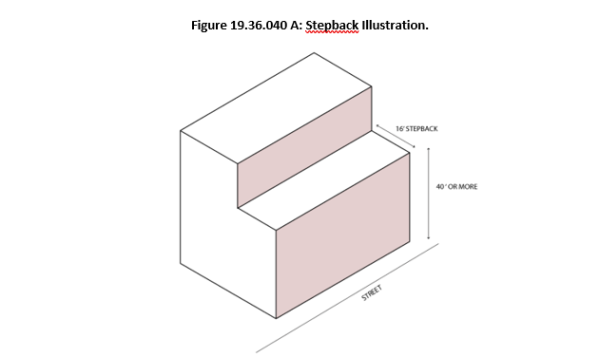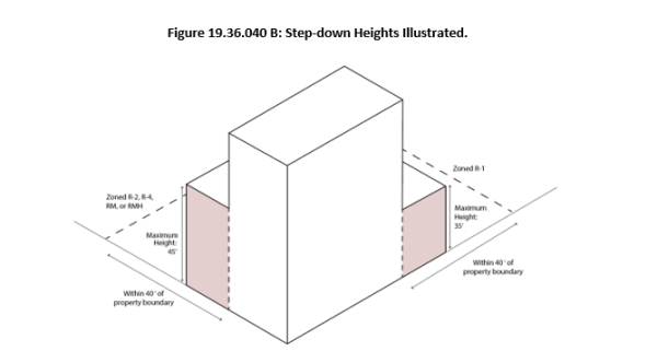 Step-down Height Adjacent to Residential Areas: Within forty feet (40’) of sites zoned residential, the following standards shall apply. Stepped-down height is not required in the NMU Zone: