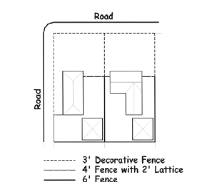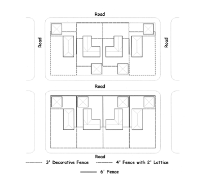 In lieu of a masonry wall, the Zoning Board of Appeals may permit the use of a seventy-two-inch-high manicured hedge or other fencing material with exception to properties located within the Village Overlay District.