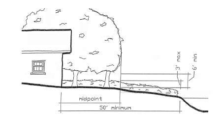 Slope away from buildings and finished floor elevations. The grade around buildings and structures shall be constructed at an elevation which provides a sloping grade away from the building or structure, thereby causing surface water to drain away from the walls of the building to a natural or established drainage course. Grading on the subject parcel shall be so developed as to prevent surface from flowing onto adjoining parcels except through a previously defined drainage course. The grade shall not exceed six (6) inches of rise in ten (10) feet from side lot line (five (5) percent slope) at any location perpendicular to the lot line.
