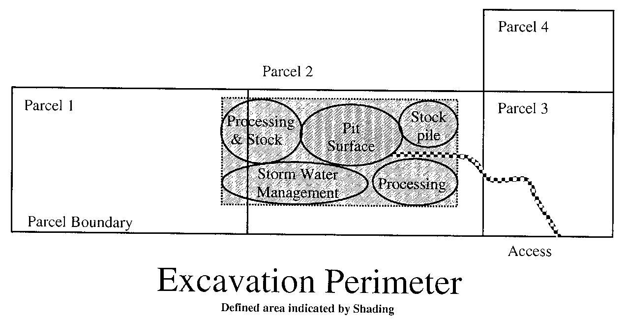 Excavation perimeter. Land within an excavation site, which includes the excavation area, areas where excavation