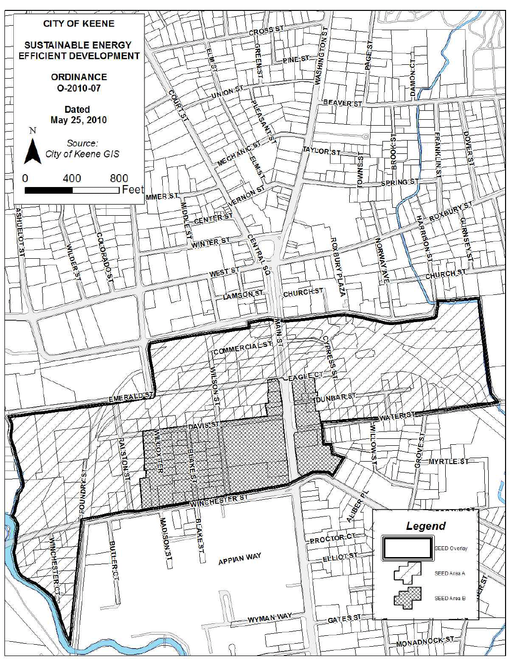 The purpose of this article is to amend the City of Keene Zoning Ordinance to create the sustainable energy efficient development (SEED) overlay; and to provide the rules, regulations and procedures applicable to the SEED overlay in order to promote smart growth, mixed-uses and green development, and to provide an opportunity for height, density and use incentives to guide development and redevelopment towards the city's urban core, where adequate infrastructure and services can accommodate growth. This purpose will be accomplished by: