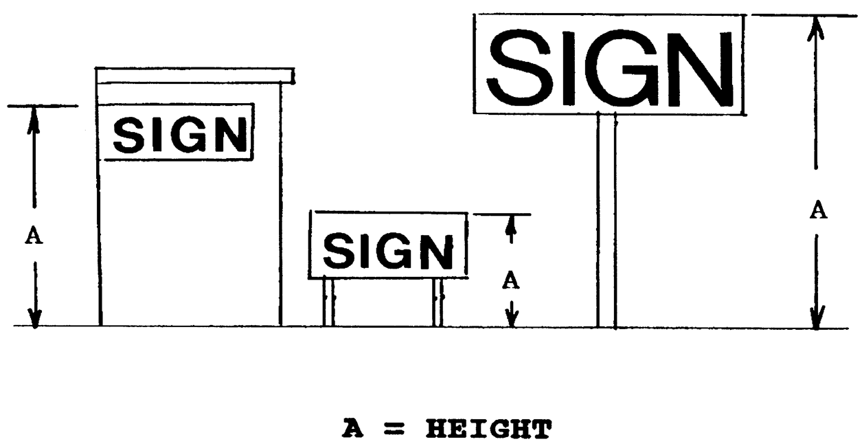 Height. The height of such sign shall not exceed eight feet in height for the sign structure and six feet in height for the sign when placed within one-half of the district setback line, and said sign shall not exceed 15 feet in height when placed beyond this line.