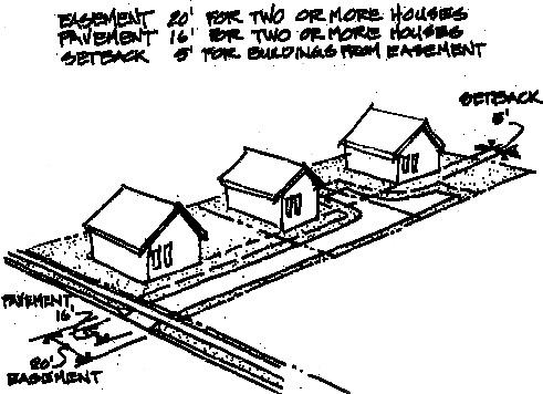 Private access easement. A private access easement of not less than 20 feet where the access easement connects the property to a public street and the easement is improved to the minimum standards of section 2.302.08. (5/98)