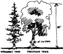 Deciduous trees. Deciduous trees shall have a minimum caliper of two inches (DBH), and a minimum height of eight feet at the time of planting. (11/17)