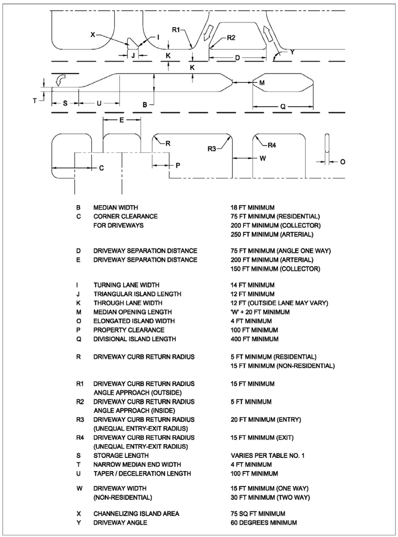Residential subdivision street connections to the thoroughfares, at the entrance to the subdivision, shall provide for a ten-foot (10') extra right-of-way and five-foot (5') of additional pavement to accommodate for easier turning movement. These entrances to residential additions shall provide a divided entry with a landscaped island. The landscaping and irrigation for the islands shall be shown on the landscaping plans for the development. All raised islands within developments and/or medians that have no landscaping shall be paved with brick/concrete pavers or stamped concrete as approved by the City.