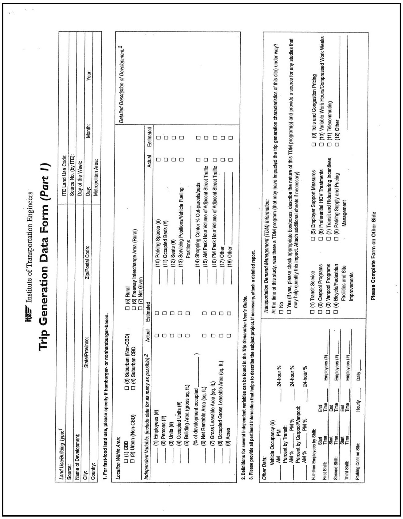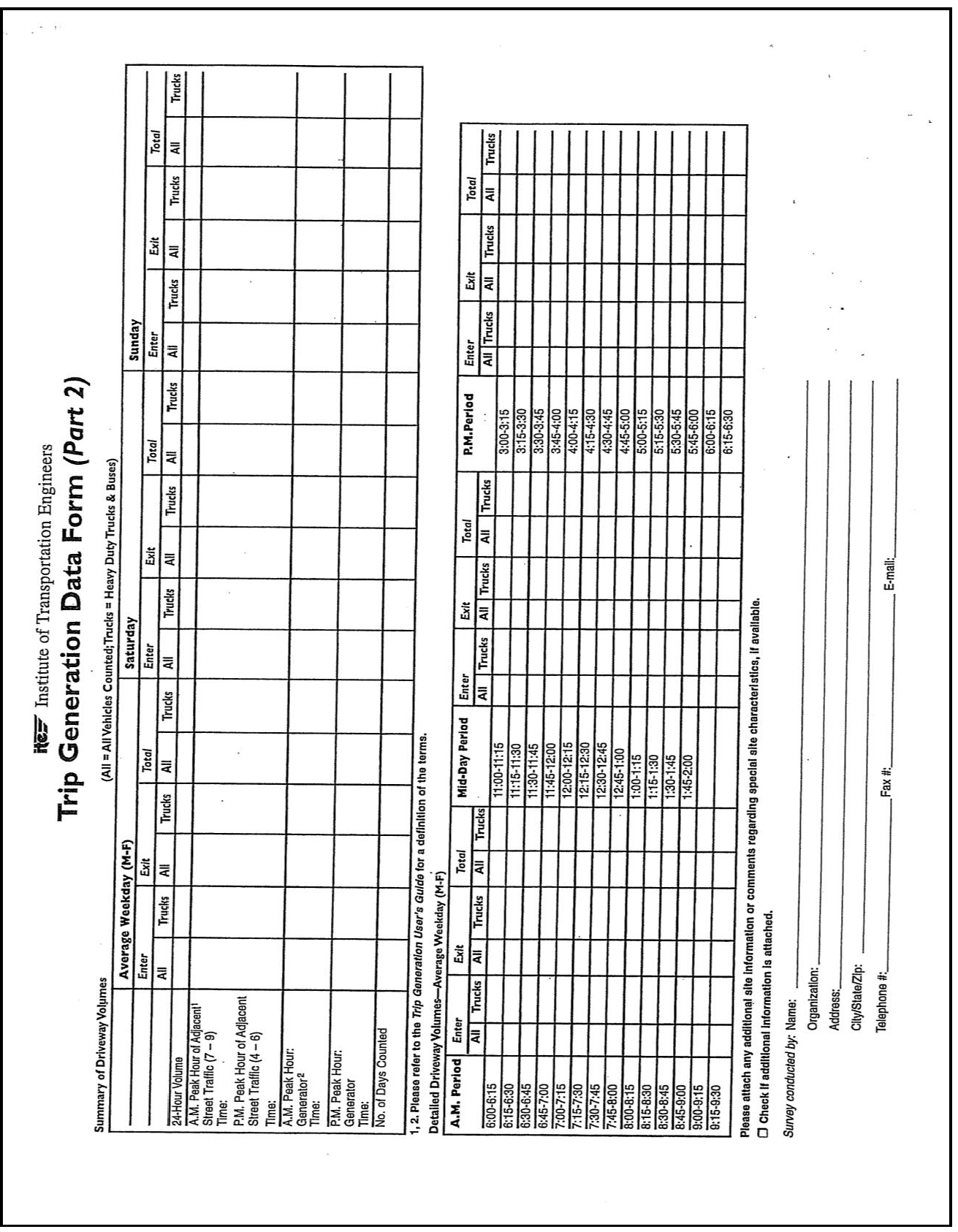 Trip Generation Resources. The City's standard for trip generation rates for various land use categories shall be those found in the latest edition of Trip Generation published by the Institute of Transportation Engineers (ITE) or other published or recognized sources applicable to the region. Alternate trip generation rates may be accepted on a case-by-case basis if the applicant can provide current supporting data substantiating that their development significantly differs from the ITE rates. A written request for acceptance of alternative trip generation rates must be submitted to the City's Director of Public Works or designated representative in advance of the TIA submission. .
