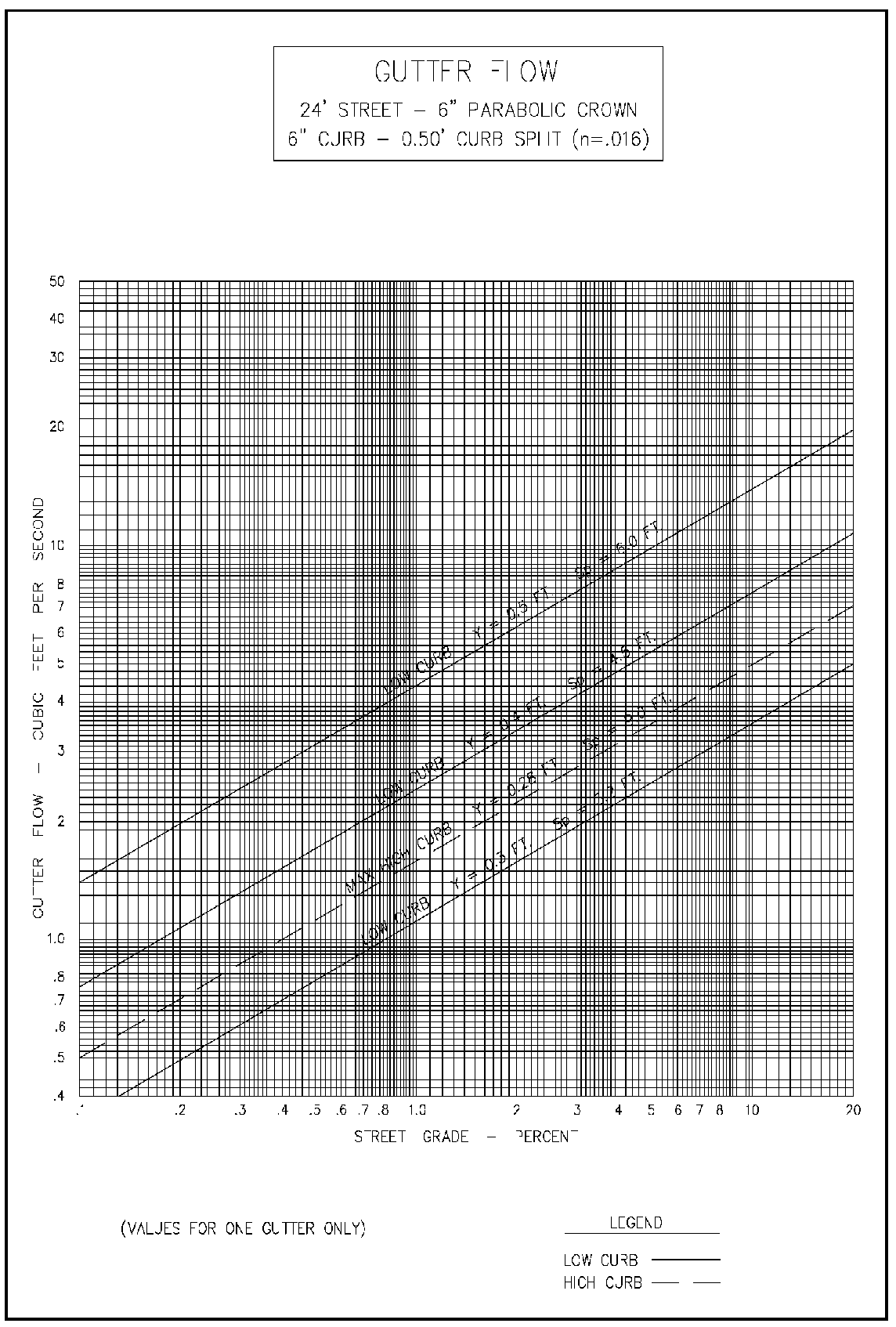FIGURE 5.01 - Gutter Flow Curves - 24' Street, No Curb Split