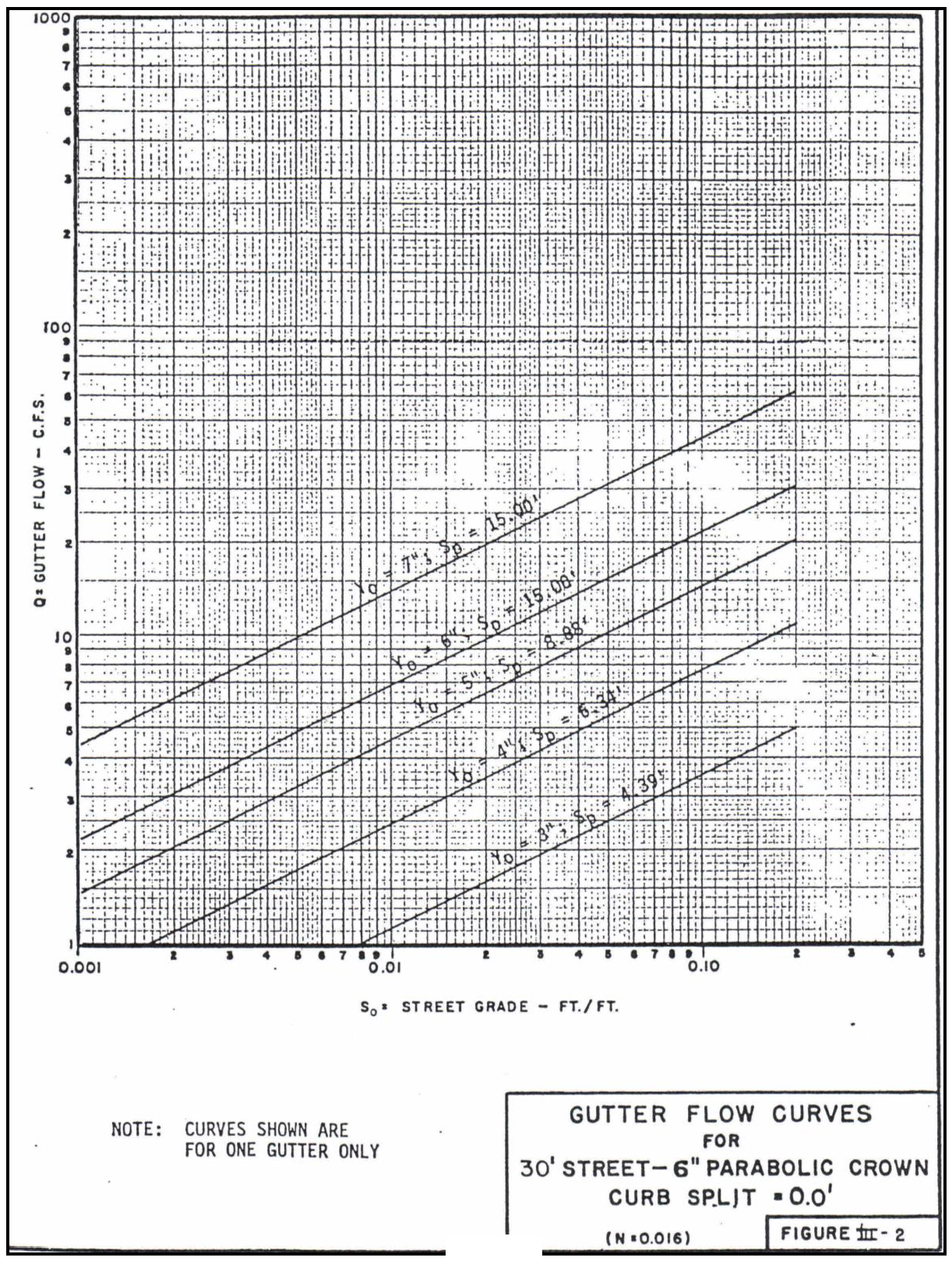 FIGURE 5.04 - Gutter Flow Curves - 30' Street, No Curb Split