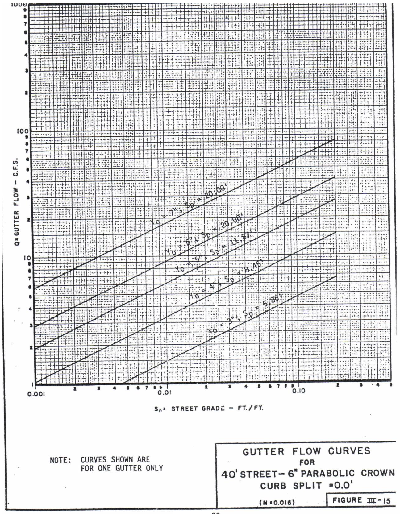 FIGURE 5.05 - Gutter Flow Curves - 40' Street, No Curb Split