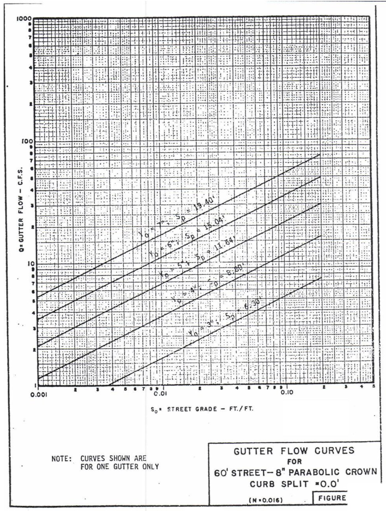 FIGURE 5.07 - Gutter Flow Curves - 60' Street, No Curb Split