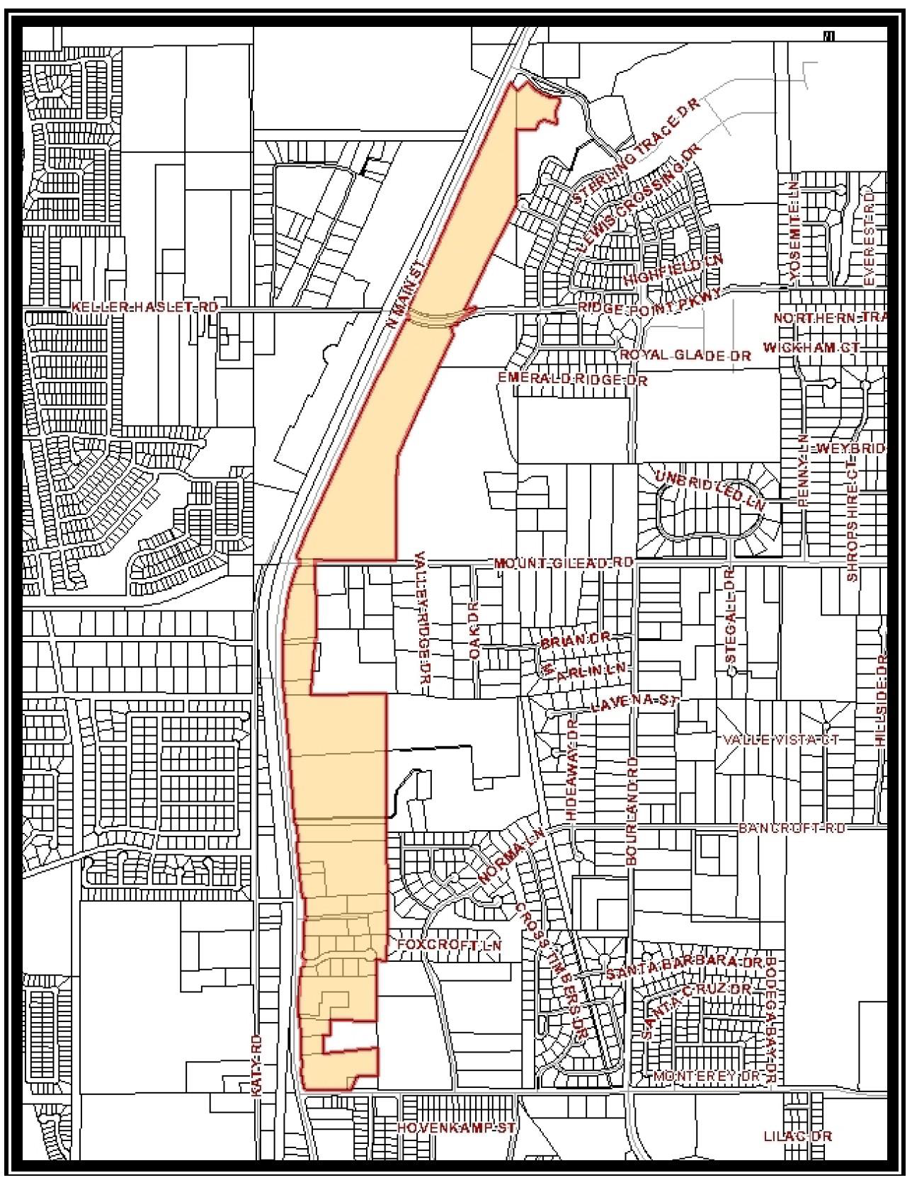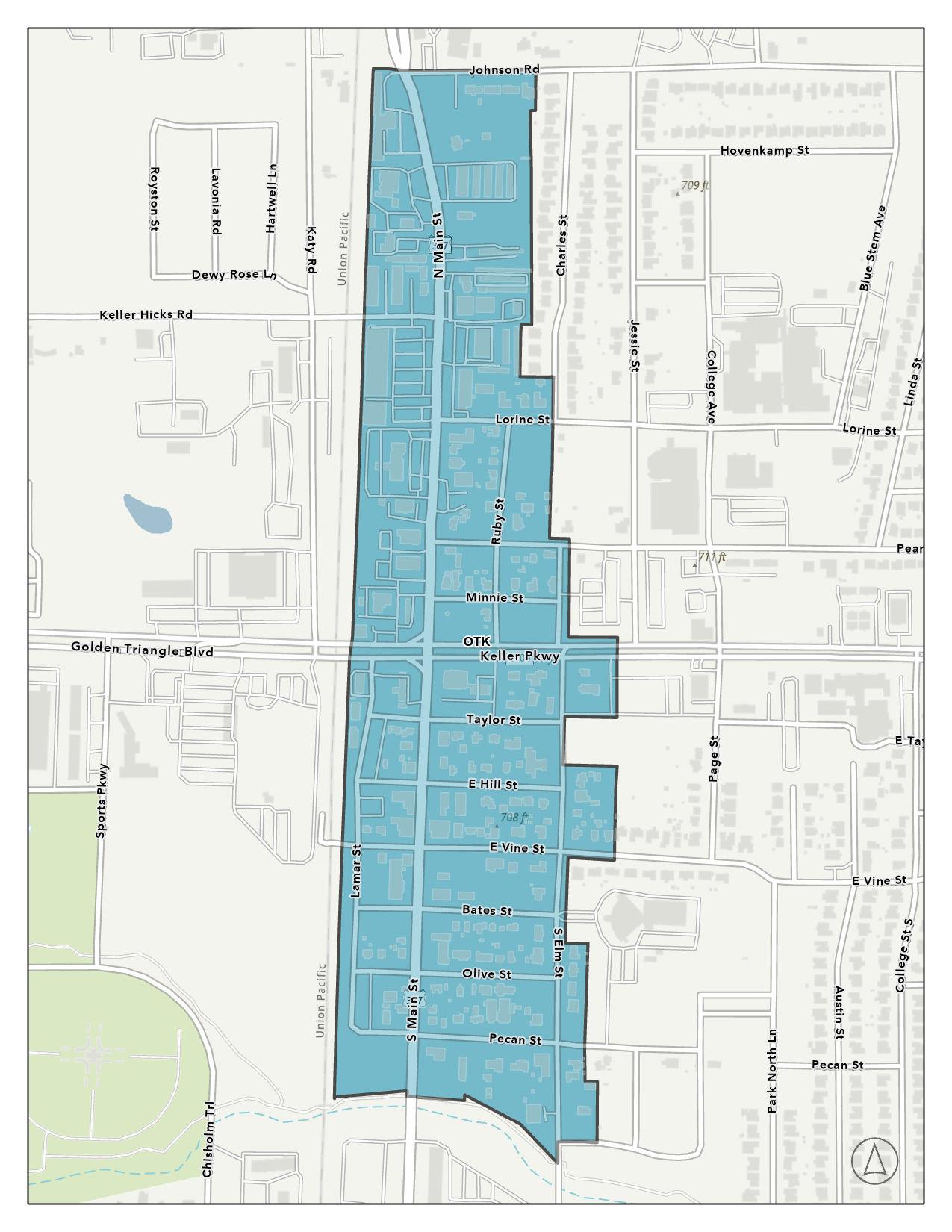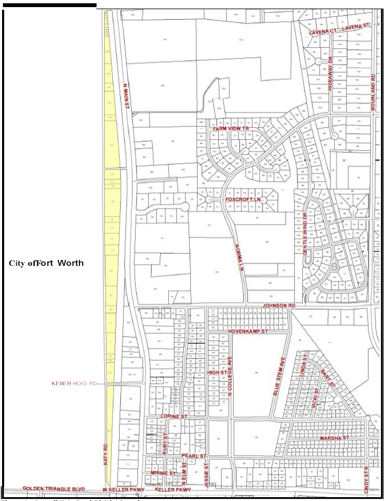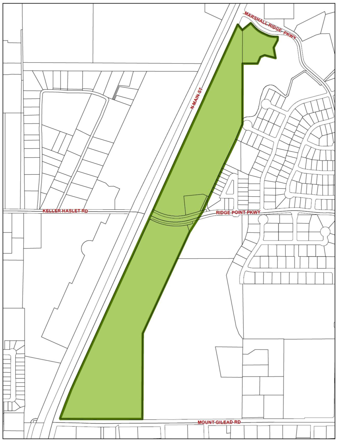 Boundary. The U.S. Highway 377 North Overlay District encompasses land parcels on the east side of U.S. Highway 377 from Johnson Road north to the southern rights-of-way line of Marshall Ridge Parkway. The boundary of the District is shown in Figure 1.