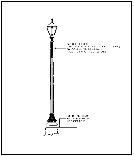 For required lighting in "1)", "2)", and "3)" above, other light standards and fixtures of similar Prairie, Mission, or Arts and Crafts styles may be used if found to be consistent with the design of this overlay district at the time of site plan review.