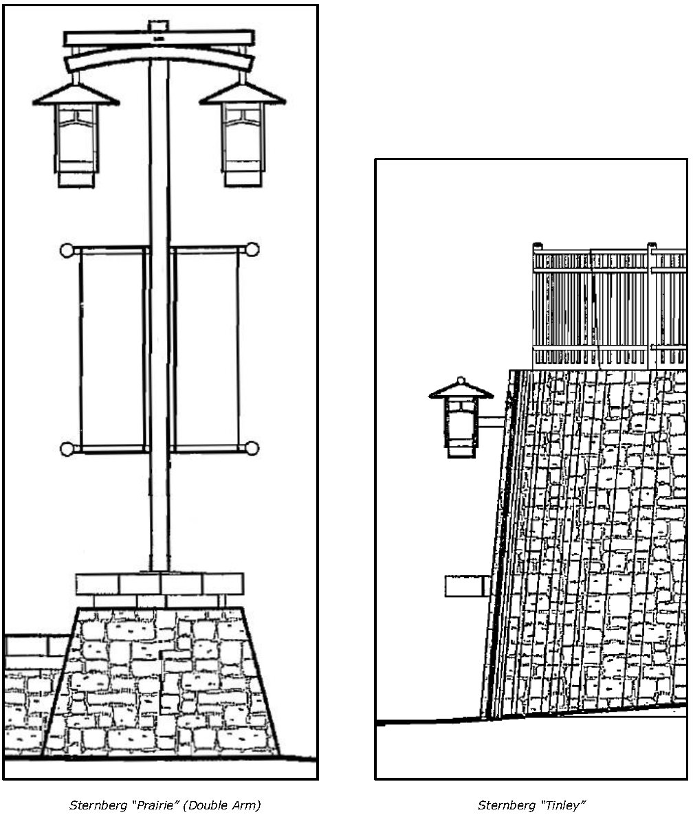 Decorative building-mounted lighting shall be Sternberg "520 Tinley" fixtures.