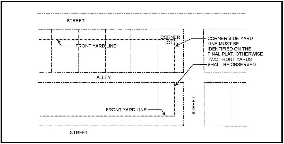 Figure 5 - Front Yard Where Zoning Changes in a Block