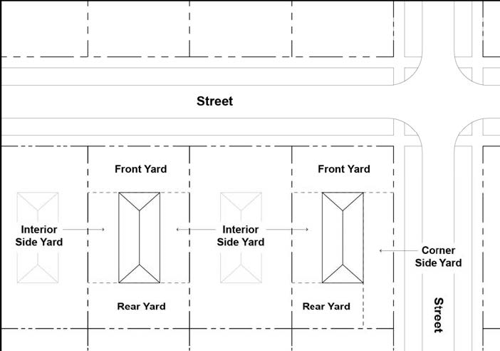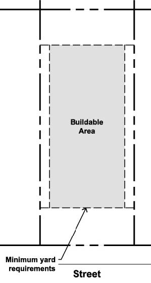 Yard, Side: A yard between the main building and the side lot line and extending from the required front yard to the required rear yard and being the required minimum horizontal distance between the side lot line and the side line of the buildable area.