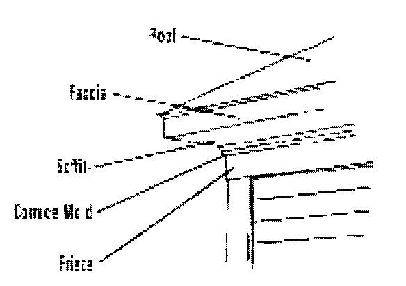 Water Table: A sloping horizontal surface, of brick or stone, on an exterior wall, usually at the foundation level.