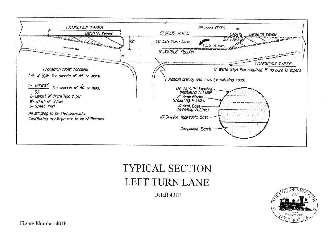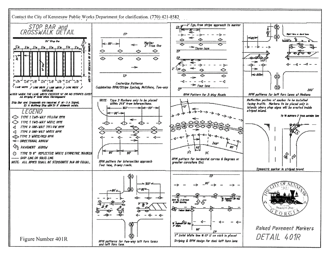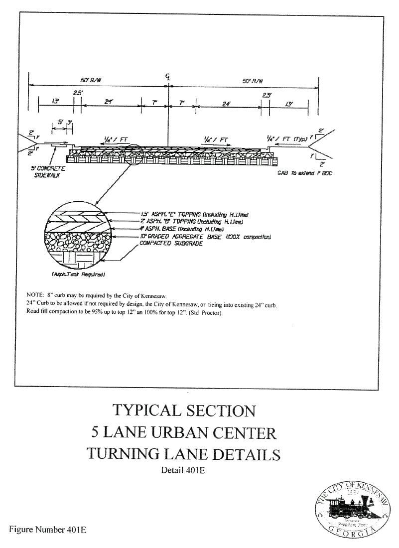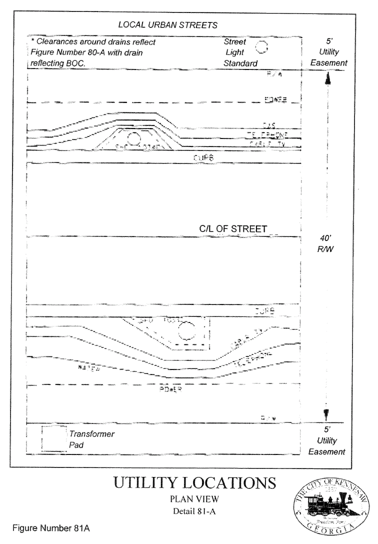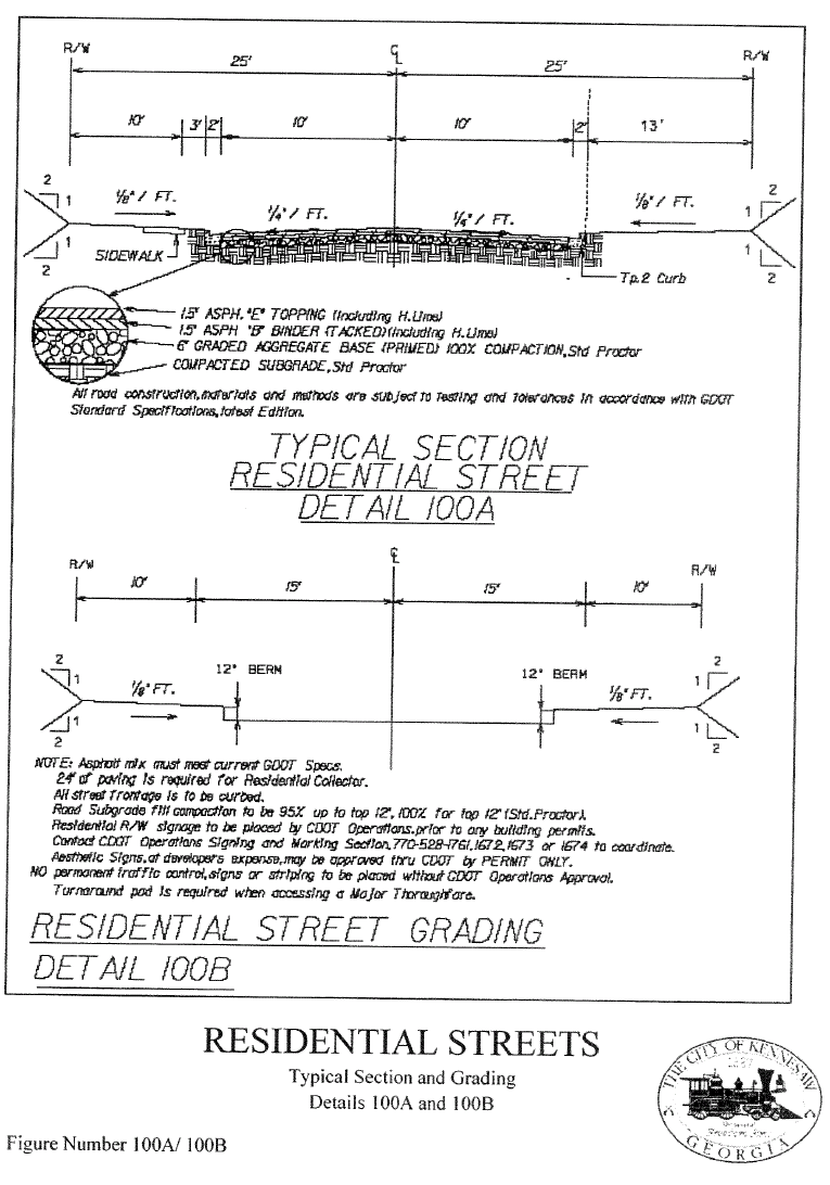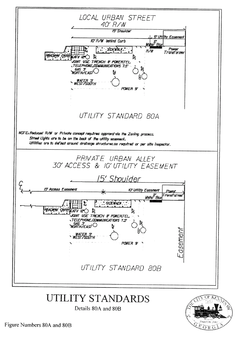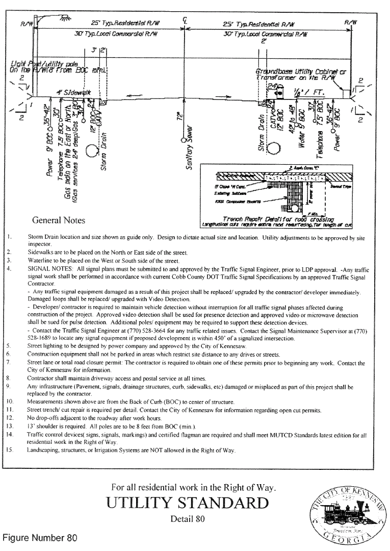 City of Kennesaw has adopted the Georgia Department of Transportation, Utility Accommodation Policy and Standards, Section 3 - Rules for Issuing Permits (as may be amended from time to time). Please see Volume 2, Section 508, Materials Specifications and Standard Details.