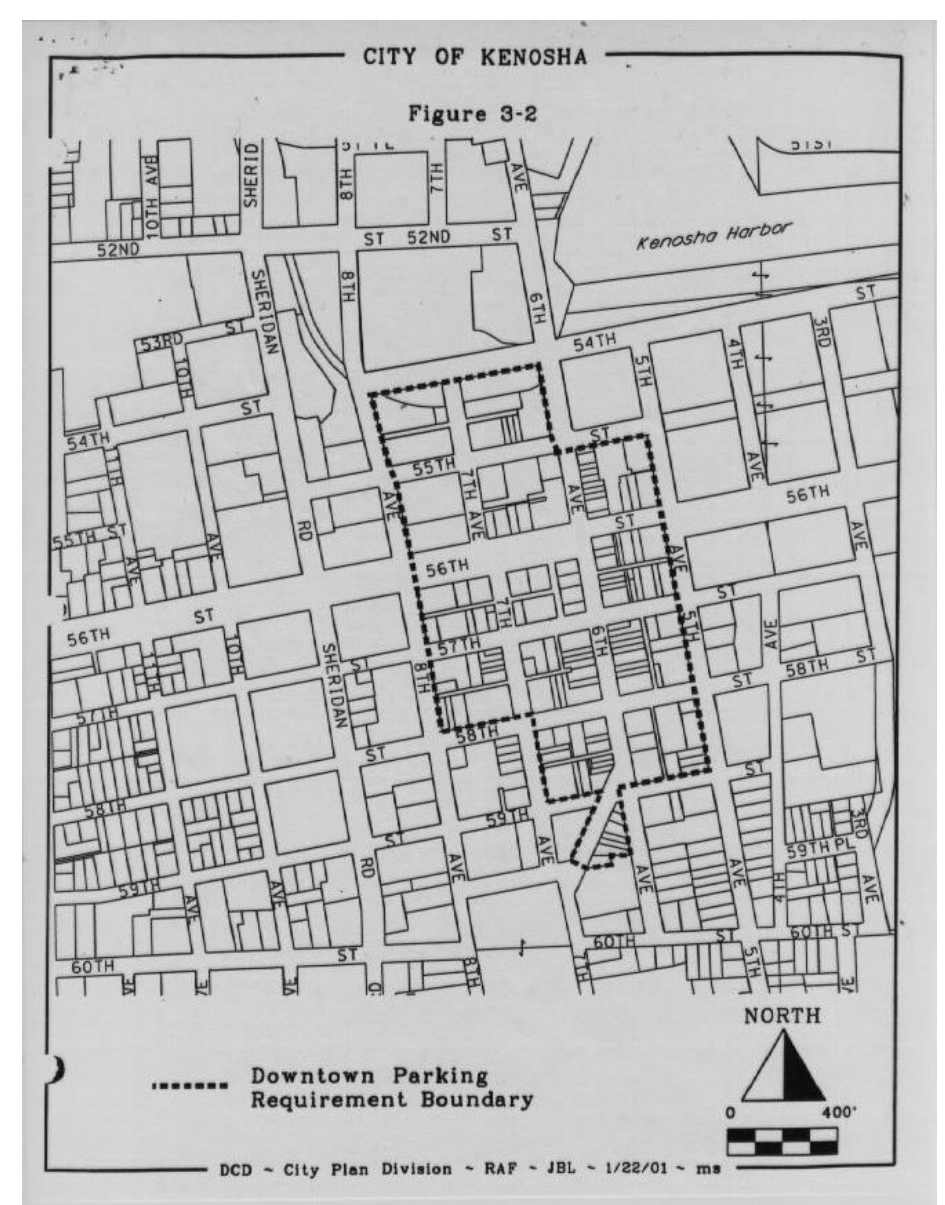 B-6 Kenosha Innovation Neighborhood Requirements. For the purpose of encouraging pedestrian development within the B-6 district the following parking requirements apply: