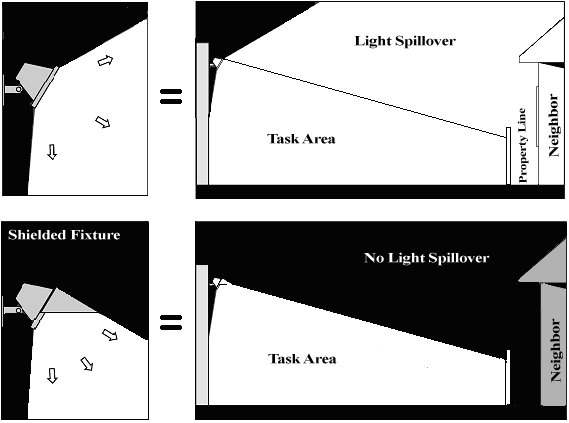 Promote a reduction in unnecessary light intensity and glare, and to reduce light spillover onto adjacent properties.