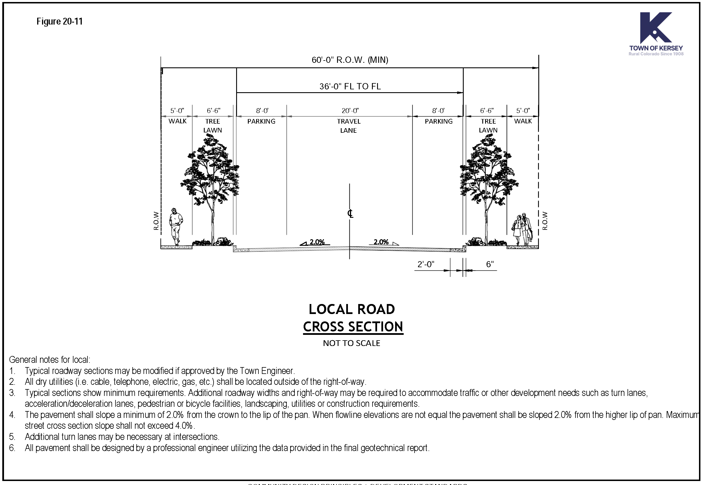 Design Elements. One of the greatest challenges facing small towns is the successful integration of new development with the original town pattern. Suburban development patterns which have included numerous cul-de-sacs and limited street connections have often separated communities and created enclaves of the original towns. In order to maintain Kersey's unique, small town character and clearly describe the Town's vision, the following design elements must be followed.