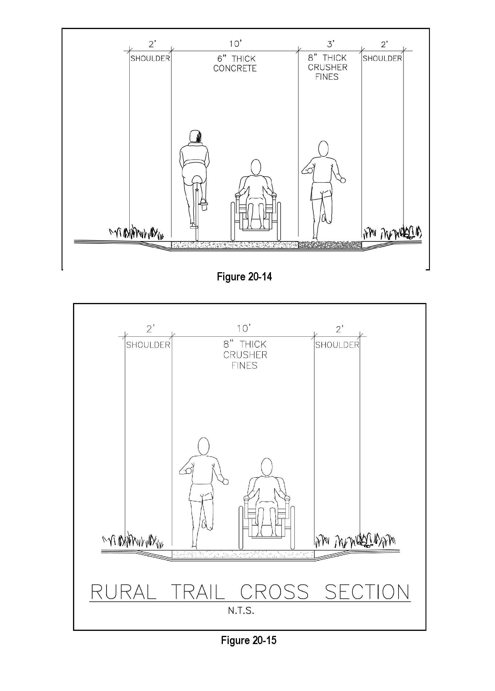 Pedestrian and bike connections throughout residential neighborhoods and linked to neighborhood commercial or civic centers and open space systems.