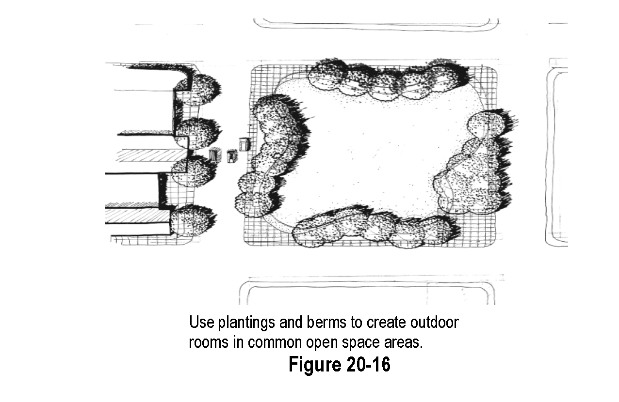 Public Space as Development Framework. Public space is used to organize blocks and circulation patterns and to enhance surrounding development. Public open space must be functional and easily accessible and shall be designed to organize the placement of buildings to create an identity for each neighborhood. Buildings should face public open space to allow for casual surveillance.