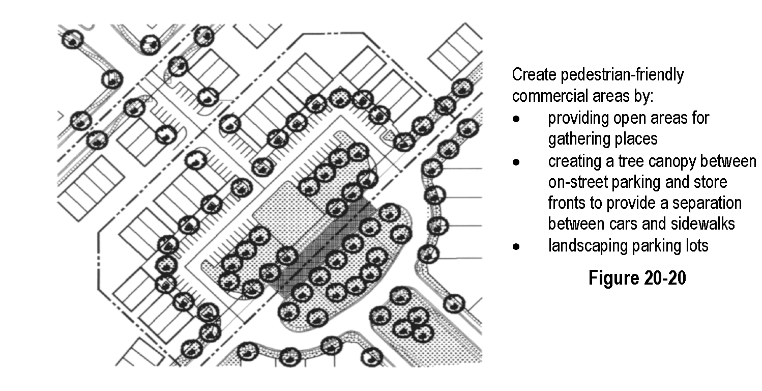 Neighborhood Center. The design of the commercial center needs to function as a focal point or activity center for the neighborhood. The design should include, where possible, outdoor space for pedestrians, such as a plaza, outdoor café or seating area.