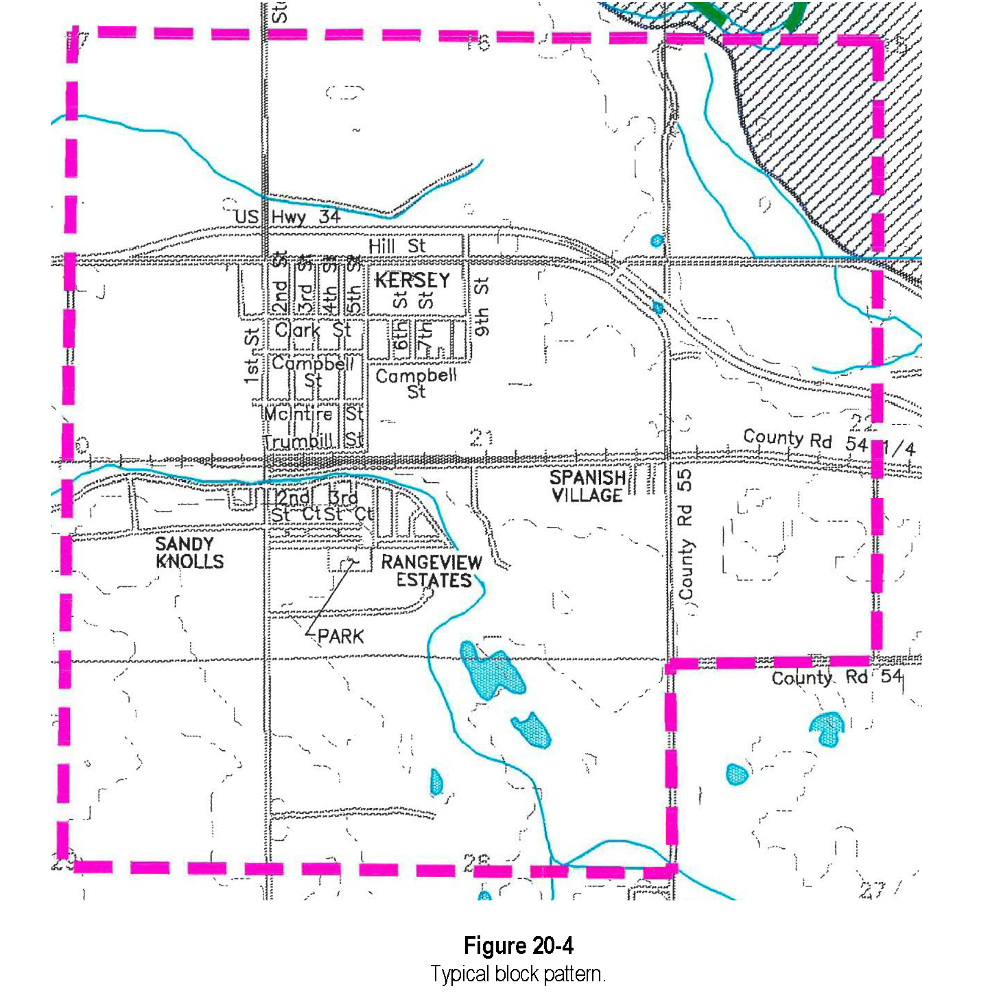 The importance of this basic rule cannot be overstated. For this reason, the Town Pattern Plan has been incorporated into the Kersey Land Use Code in order to assist the Town in creating a vision for expansion of the core community and to give direction to the development community on the elements needed to strengthen the sense of community and small town character.