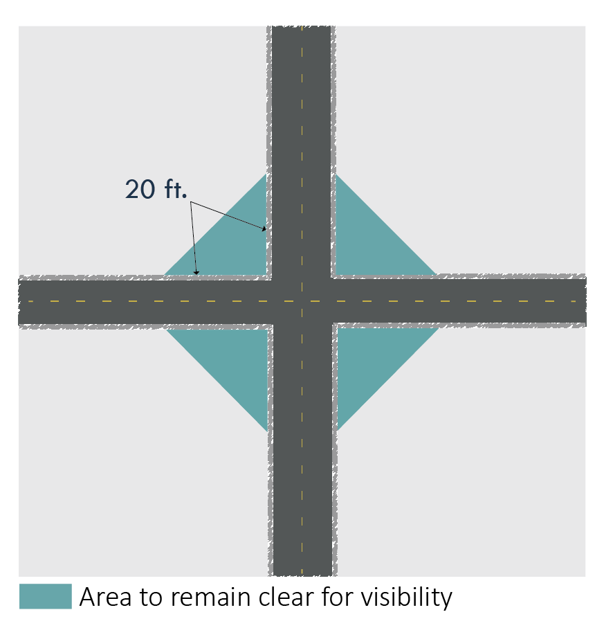 For protection against traffic hazards, no planting, sign, structure, or other impediment to visibility greater than 3 ft. in height shall be erected, placed, allowed to grow, or maintained within a visibility triangle on any corner lot.