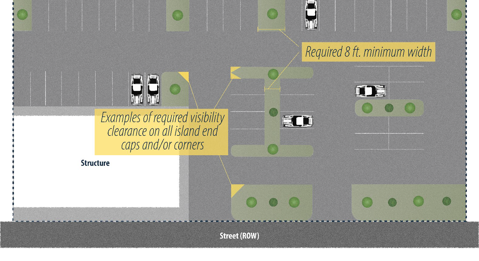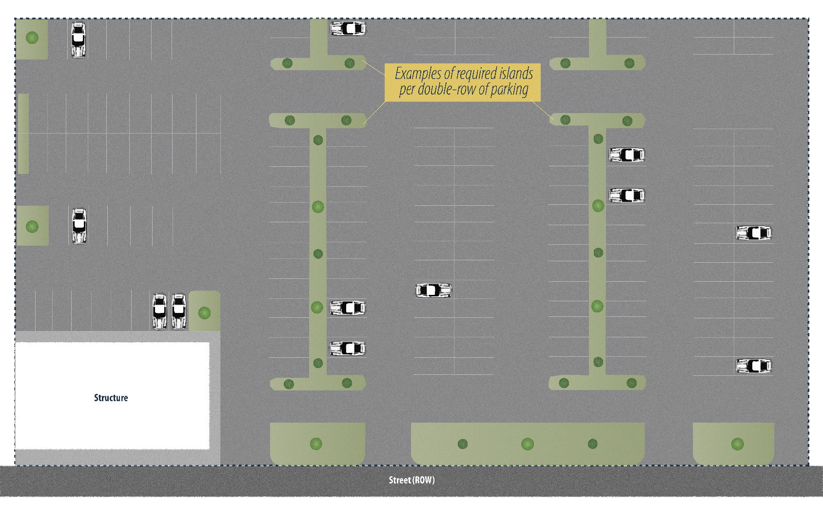 Description. All areas occupied by required landscape areas and transitional buffers, except for parking lot landscaping.