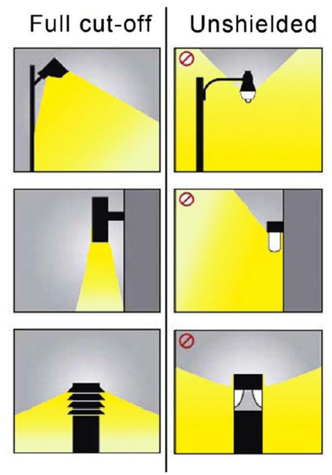 In addition to being full cut-off lighting, all lighting shall be aimed and controlled so directed light is directed inward to the property and confined to the object intended to be illuminated. Directional control shields shall be used when necessary to limit stray light and prevent glare to adjacent properties or vehicular public rights-of-way.
