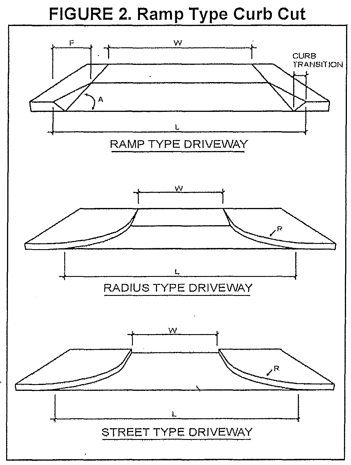 Figure 2 illustrates a typical ramp, radius, and street type driveway design.