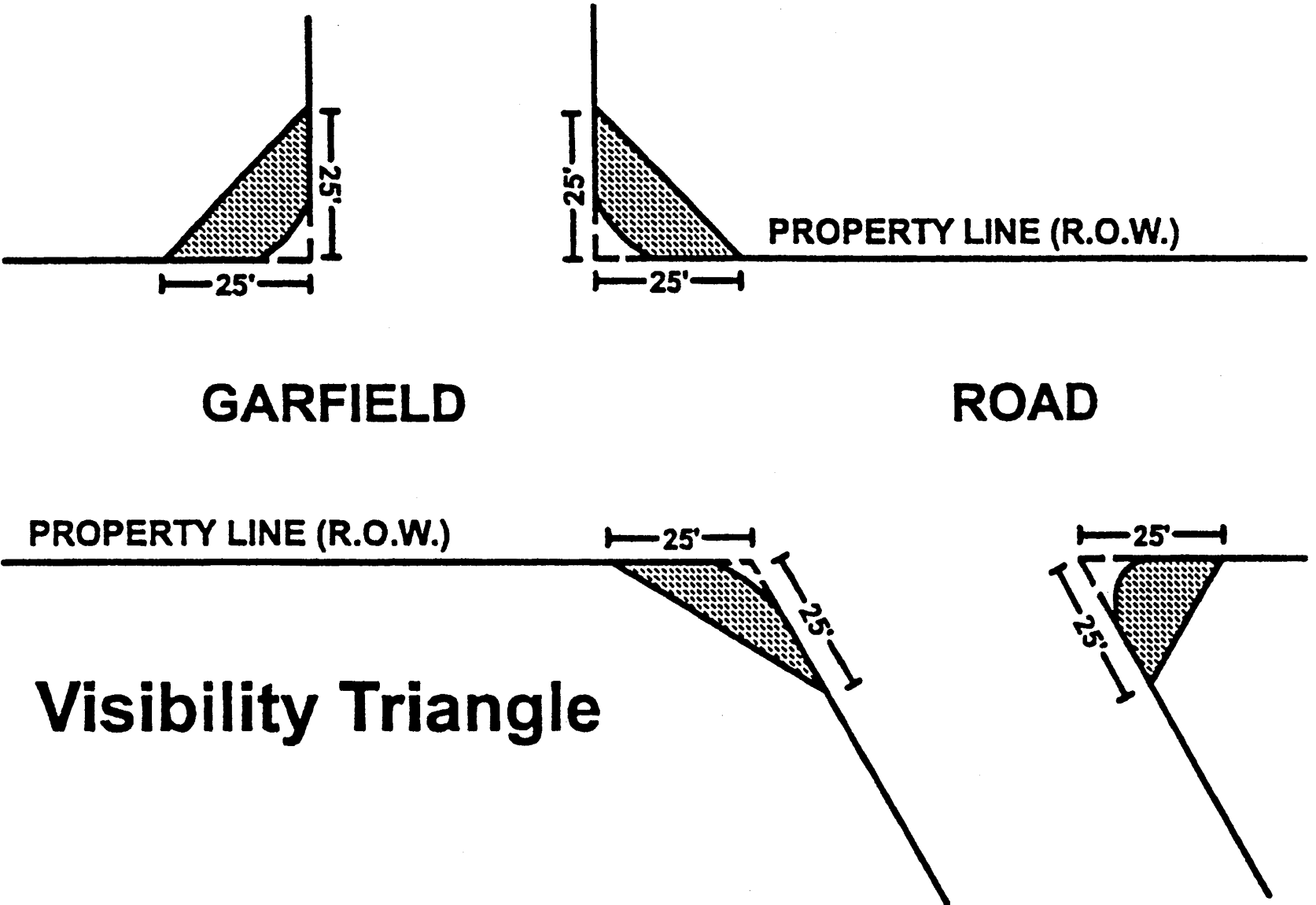 3.20.04. Visibility triangle. The following regulations provide for the maximum safety of persons using sidewalks and streets, and for the maximum enjoyment of the use of property.