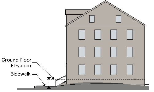 GROUND FLOOR means the floor of a building that is at or nearest to the level of the ground around the building. Does not include the floor of a basement.