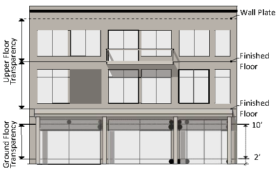 BUILDING FAÇADE means the face of a building that delineates the edge of conditioned floor space.
